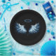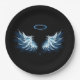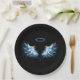 Blue Glowing Angel Wings on black background Paper Plate