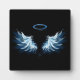 Light, artistic, blue angel wings on a black background. Angel wings.