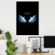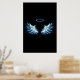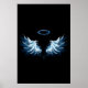 Light, artistic, blue angel wings on a black background. Angel wings.