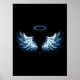 Blue Glowing Angel Wings on black background Poster