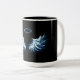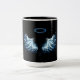 Blue Glowing Angel Wings on black background Two-Tone Coffee Mug