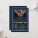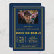 A stylish 100th birthday party invitation. A modern invite in blue and gold. This stylish invitation allows for a custom personalised photograph of the birthday boy! Text in gold coloured effect font and all can be amended to customise to your party requirements, then personalised with a name and date.