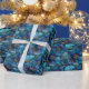 Blue Gold Abstract Watercolor Florals Wrapping Paper