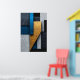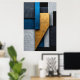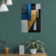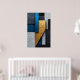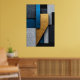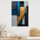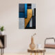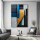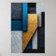 Abstract vertical composition with overlapping geometric panels. Deep blue tones, aged gold, and concrete grey with cracked texture. Modern and sophisticated design ideal for interior decor. Bring industrial elegance and visual depth to your wall with this exclusive art piece.