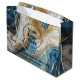 Gift bag with a beautiful blue, gold and white marble design that gives a luxurious and modern look.