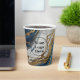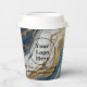 Paper cup with a beautiful blue, gold and white marble design that gives a luxurious and modern look.