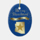 Give them something pretty from the great state of Arizona! On the front of this ornament is a shiny gold silhouette image of the state, with a darker gold star imposed over it. Above the state and star image is the glittery message MERRY CHRISTMAS in script, and a banner with the text in blue ARIZONA. Around it all are gold snowflakes. The images and text are placed on a deep blue background. The back of the ornament has text fields in light gold for you to customise, and a second gold star image. You may change the background colour, if you'd like, by choosing CUSTOMIZE.