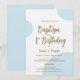 Blue Gold Baby Baptism and 1st Birthday joint Invitation
