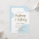 Blue Gold Baby Christening and 1st Birthday joint Invitation