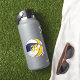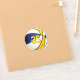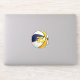 This custom basketball sticker features the realistic image of a basketball that has alternating blue, white and gold recolored panels upon which you can personalise the athlete's name and jersey number - by katz_d_zynes