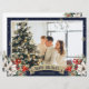 Celebrate the winter holidays with this blue photo holiday card featuring a watercolor painting of poinsettia, holly and red berries. Easily personalize this holiday card with your photo and text.
