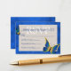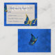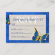 Blue and gold rsvp enclosure card with butterfly design. Blue artwork matches butterfly invitation and return address labels. Perfect for quinceañeras and other birthday celebrations with royal blue or navy blue theme colours.