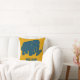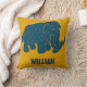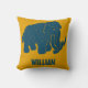 Create a personalised gift featuring a cute ice age animal. This throw pillow or cushion features a cartoon style illustration of a woolly mammoth in blue set against a gold background and is ready to be personalised with a name or other text. The reverse side has a coordinating pattern of mammoths against a gold background.
