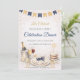 Blue and gold celebration theme, script typography, soft neutral backdrop with banner flags, champagne display, cake detail, and table setting elements. Designed for hosting formal dinners, milestone gatherings, or evening celebrations with a refined and polished event setup.