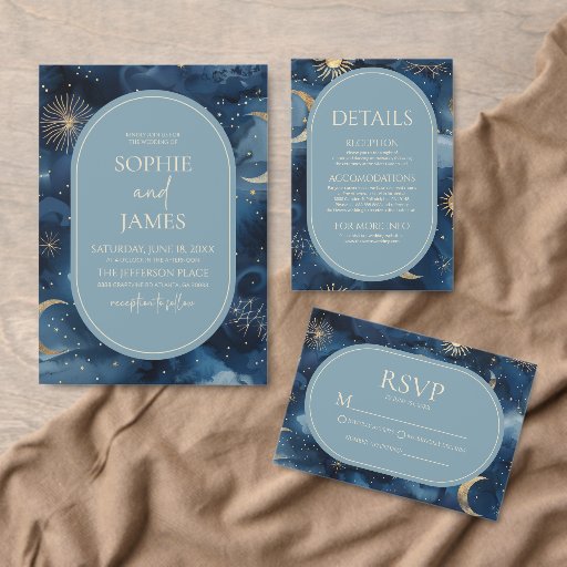 Blue Gold Elegant Celestial Starry Sky WeddingDesigned by Maia F