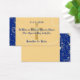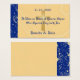 This wedding favour card is decorated with gold Christian cross and blue and gold damask bars on a gold damask background.