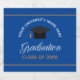 These classy blue and gold custom college graduation party beer labels feature classy white typography under a university grad cap for the class of 2024. Customize with your graduating year under the chic calligraphy.