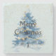 Blue Gold Confetti Christmas Tree Stone Coaster