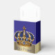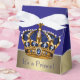 Elegant royal blue and gold prince crown baby shower favour boxes. These beautiful blue and gold prince baby shower favour boxes can be personalised with text and you can change the ribbon colour.
