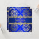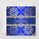 Elegant royal blue and gold damask jewel trim all occasion party invitation template. Add your details to the front and/or back of this beautiful royal blue and gold party invitation by simply choosing the "Customise it!" button to begin adding your event details, font style, font size & colour, and wording. Please note - all of the invitation designs you will find on Zazzle are printed graphics on flat paper stock with no actual jewels, bows, raised, embossed, or added parts or pieces.