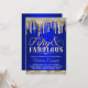 Blue Gold Diamond Drip Fabulous 50 Birthday Party Invitation