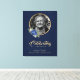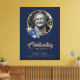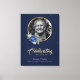 Elegant personalised blue and gold floral photo funeral welcome sign featuring a gold photo frame adorned with blue roses.