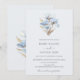 Blue Gold Flowers White Invitation
