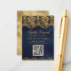 Blue Gold Foil Lace QR Code RSVP Wedding Website Enclosure Card