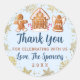 Blue Gold Gingerbread House Party Thank You Classic Round Sticker