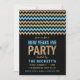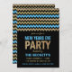 Blue & Gold Glitter Chevron New Years Party Invitation
