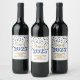 Graduation party custom wine bottle labels class of 2025 with blue and gold glitter pattern confetti.
