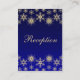 This modern and festive navy and royal blue with gold glittery LOOK (printed) snow flakes reception enclosure card matches the wedding invitation shown below. It is easily customised with your own information, so you can change the text and make it a directions card, wedding information card, gift registry card, or accommodations card. All the text is customisable. If there are any other items you need to make your event extra special, such as table number cards, favour tags or stickers, postage, matching envelopes, or place cards etc, please email your request to niteowlstudio@gmail.com.