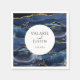 Abstract Blue Gold Glitter Marble Variegated Wedding party plate. Faux gold foil confetti and paint brush strokes. Script font highlights with easy to read serif name font. Easy to adjust for your own wedding needs. Personalised wedding party napkins.