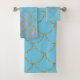 Blue & Gold Iridescent Shimmer Mermaid Scales Bath Towel Set