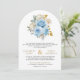 Blue Gold Ivory Floral Roses QR Code Photo Wedding Invitation