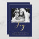 Blue & Gold JOY Holiday New Years Photo Invitation