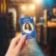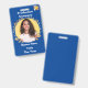 Blue Gold Leaf Plastic Badge - Vertical to identify all the members of your production team. You can personalise it with a photo, a logo, and text. The badge measures 2.13 inches x 3.38 inches and is made of PVC Plastic which makes this ID Badge durable, and it won't fade or tear.