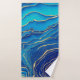 Blue Gold Liquid Painting Fluid Art Abstract Bath Towel