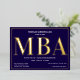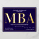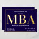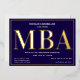 A MBA graduation party invitation with gold foil, white text, and a blue background. Simply add your information, add this invitation to your cart, and celebrate this major accomplishment.