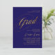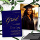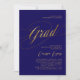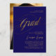 Blue & Gold Minimal Scripted Grad Ceremony Photo Invitation