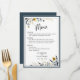Blue Gold Modern Elegant Floral Wedding Menu