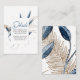 Blue Gold Modern Floral Elegant Wedding Enclosure Card