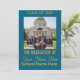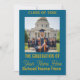 This professional 5x7 flat card features a deep slate blue background contrasted with elegant gold typography, designed specifically for the Class . The front showcases a large central vertical photo placeholder for a graduation portrait. The reverse side is engineered for storytelling, featuring a three-photo grid layout labeled for baby, toddler, and school-age pictures, creating a "then and now" visual timeline.
