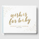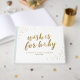 Modern trendy baby shower design with bold stripes and gold script and confetti dots.