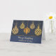 Merry Christmas for nephew and his wife card in modern navy blue with sparkly gold ornaments.