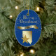Send them something pretty from the great state of Nevada! On the front of this ornament is a shiny gold silhouette image of the state, with a darker gold star imposed over it. Above the state and star image is the glittery message MERRY CHRISTMAS in script, and a banner with the text in blue NEVADA. Around it all are gold snowflakes. The images and text are placed on a deep blue background. The back of the ornament has text fields in light gold for you to customise, and a second gold star image. You may change the background colour, if you'd like, by choosing CUSTOMIZE.