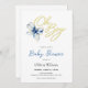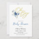 Blue & Gold “Oh Boy” Floral Typography Baby Shower Invitation