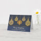 Merry Christmas for son in law card in modern navy blue with gold glitter christmas ornaments.
