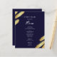 Abstract Blue Gold Paint Marble Wedding Menu. Faux gold foil stone striations. Script font highlights with easy to read serif name font. Easy to adjust for your own wedding needs. Make your own menu, use your own text to create an elegant yet cheap and affordable event menu. Easy to personalise. Custom menu paper sheets.