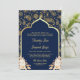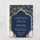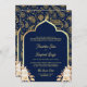 Blue Gold Paisley Floral QR Code Indian Wedding Invitation